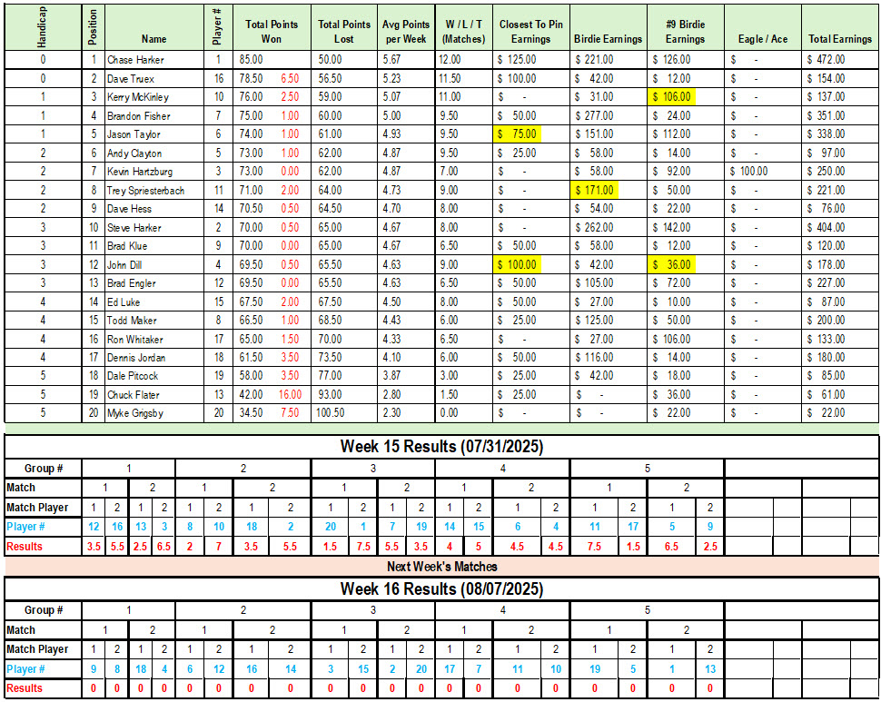 Week 15 Standings